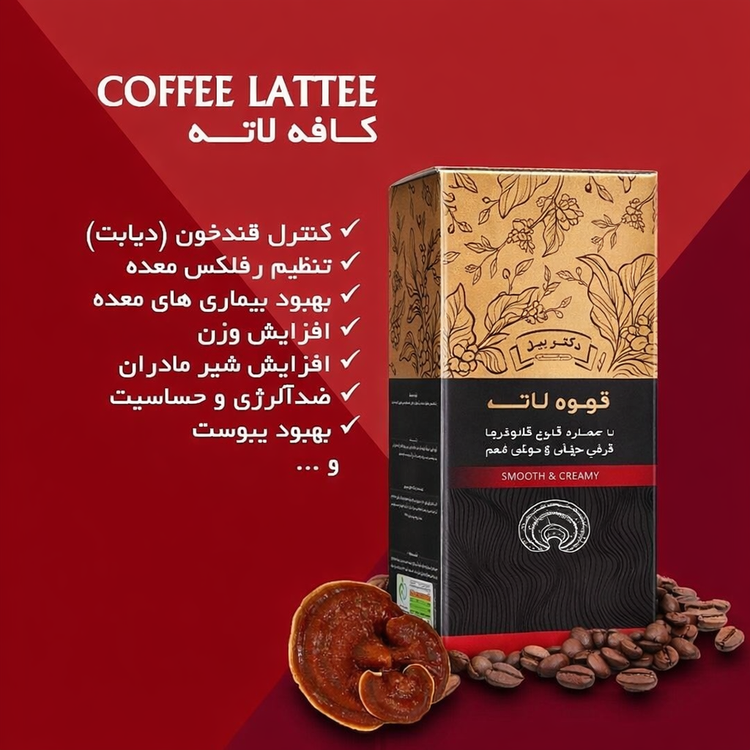 قهوه گانودرما لاته حاوی عصاره فرآوری شده قارچ گانودرما + قهوه + پودر شیر