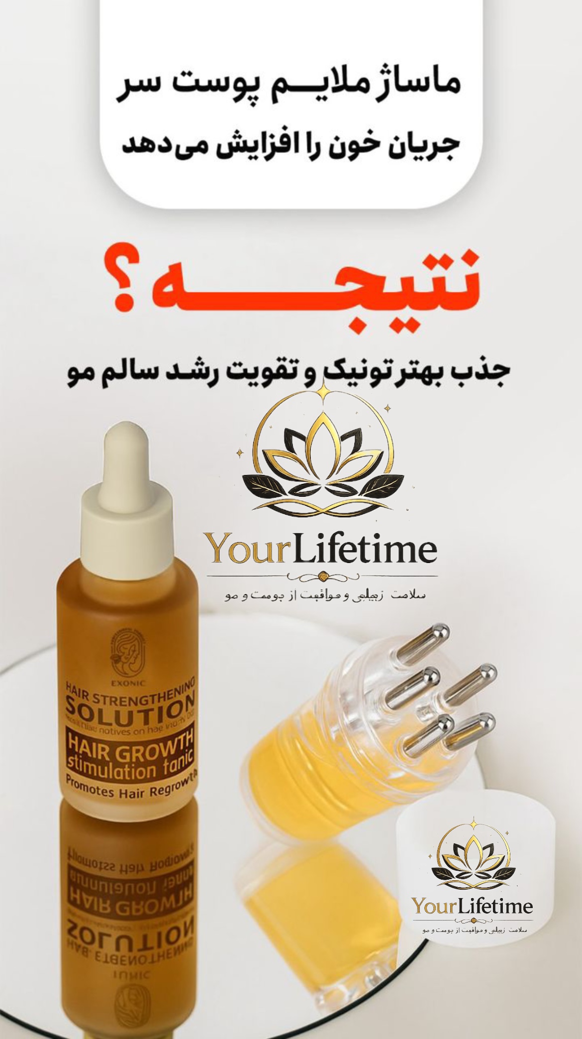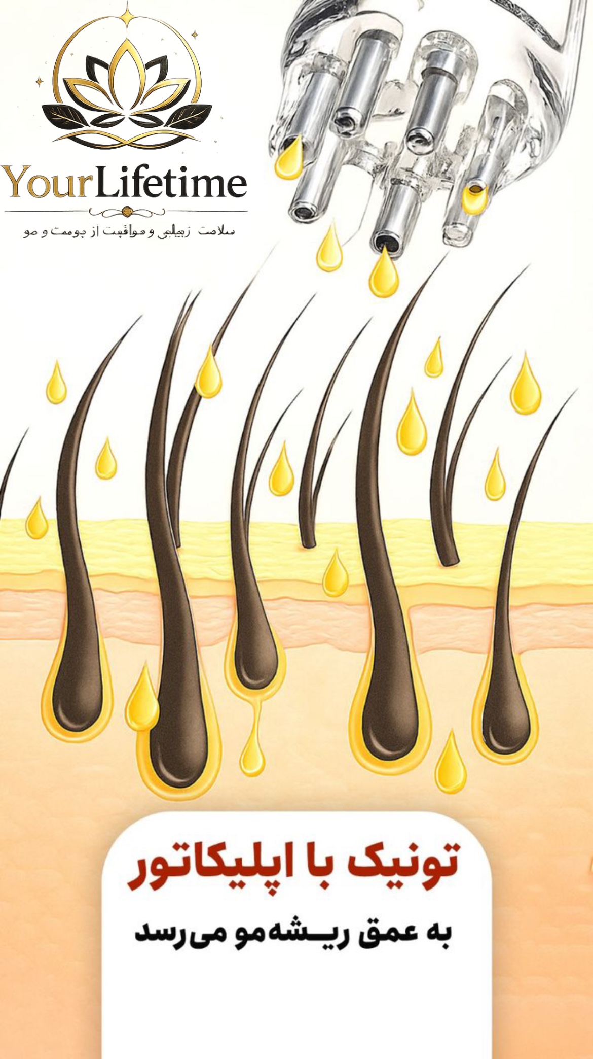 با اپلیکاتور ماساژ برای رساندن تونیک به عمق ریشه مو و جذب بهتر و موثرتر