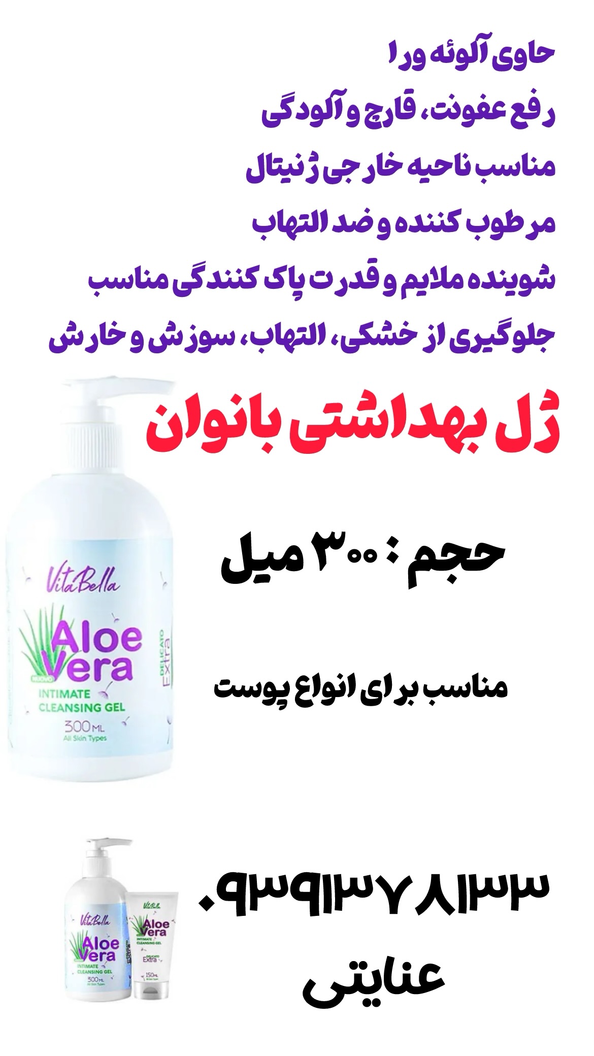 ژل بهداشتی بانوان VitaBella Aloe Vera یک شوینده تخصصی و ملایم برای ناحیه حساس بانوان است که با حفظ تعادل طبیعی pH، به پیشگیری از عفونت، بوی نامطبوع، خشکی و التهاب کمک میکند. این محصول با فرمولاسیون غنی از عصاره آلوئهورا، ضمن پاکسازی مؤثر، خاصیت تسکیندهنده و آبرسان قوی دارد و برای استفاده روزانه کاملاً ایمن است.