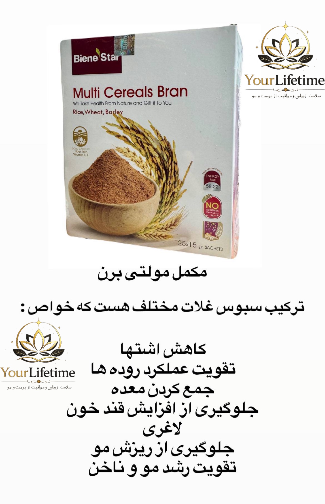 مولتی برن به پوسته و لایههای خارجی دانههای غلات گفته میشود که سرشار از فیبر، ویتامینها و مواد معدنی است. این محصول معمولاً از ترکیب چند نوع غله مانند گندم، جو، برنج و سایر غلات تهیه میشود.